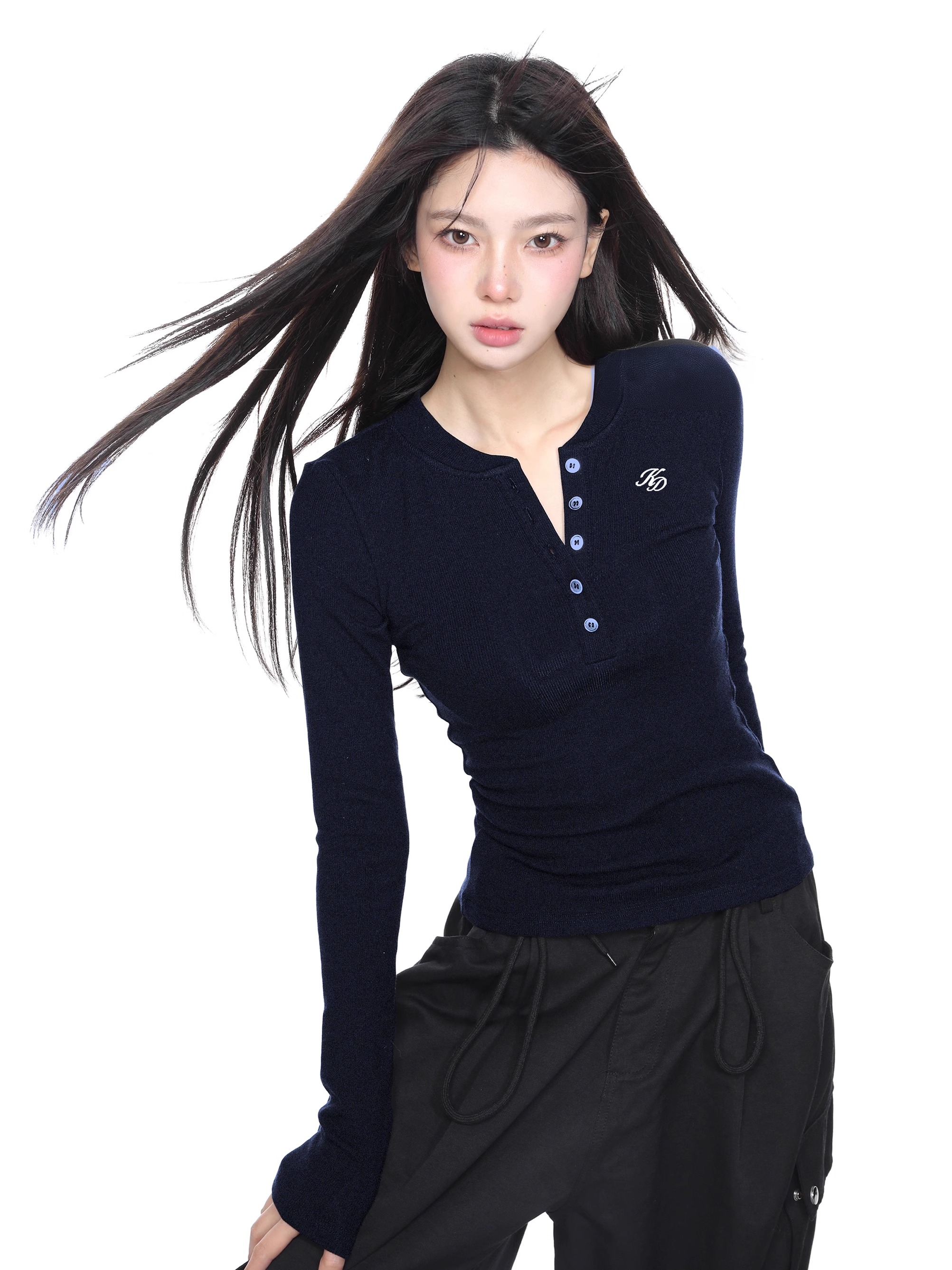 Fall and winter American Blue V Neck Long sleeves T-Shirt for Women Spring & Fall Style Inner Layering Shirt Sexy Waist silm Knitting Tops