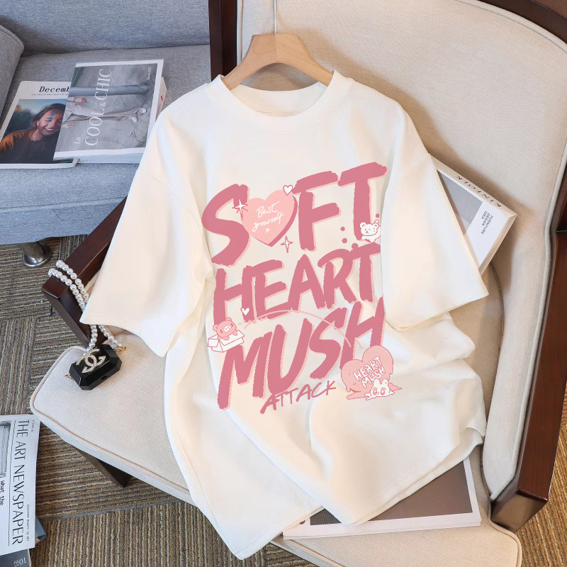 Dopamine Outfit White Short-Sleeved T-Shirt for Women pure cotton 2025 Summer New arrival Best Selling Loose Plus size T-Shirt Tops