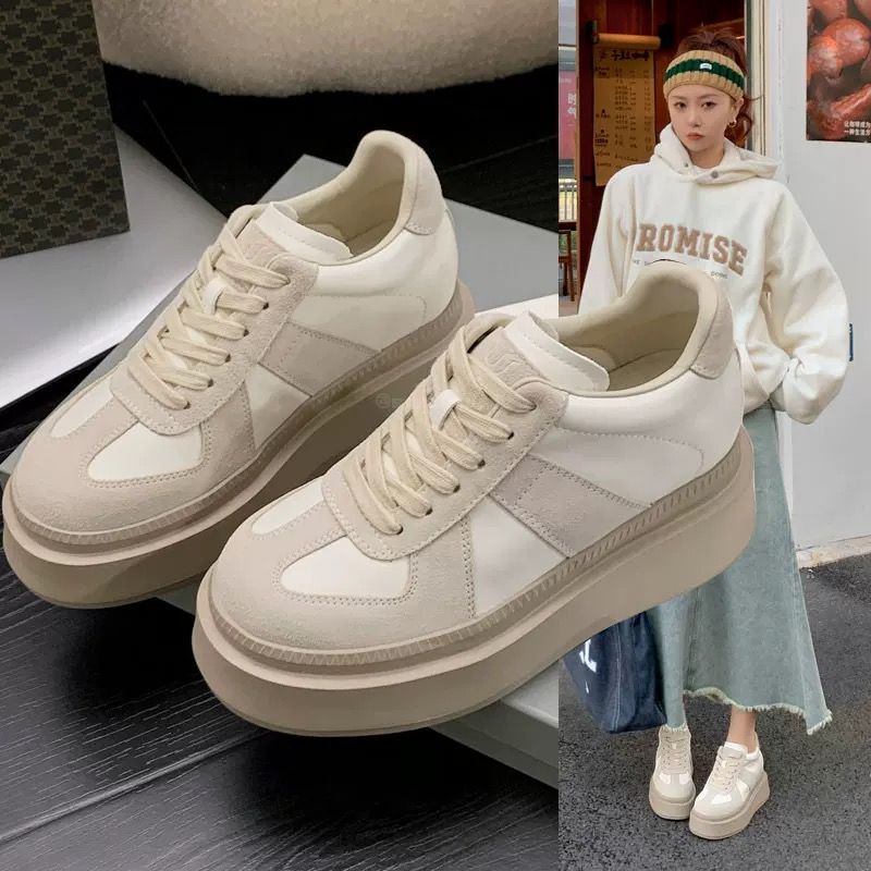 Hong Kong Thick-Soled Lace-Up Casual Shoes for Women 2025 Spring and Autumn New Sports Shoes with Hidden Height Increase Platform British Style Training Shoes