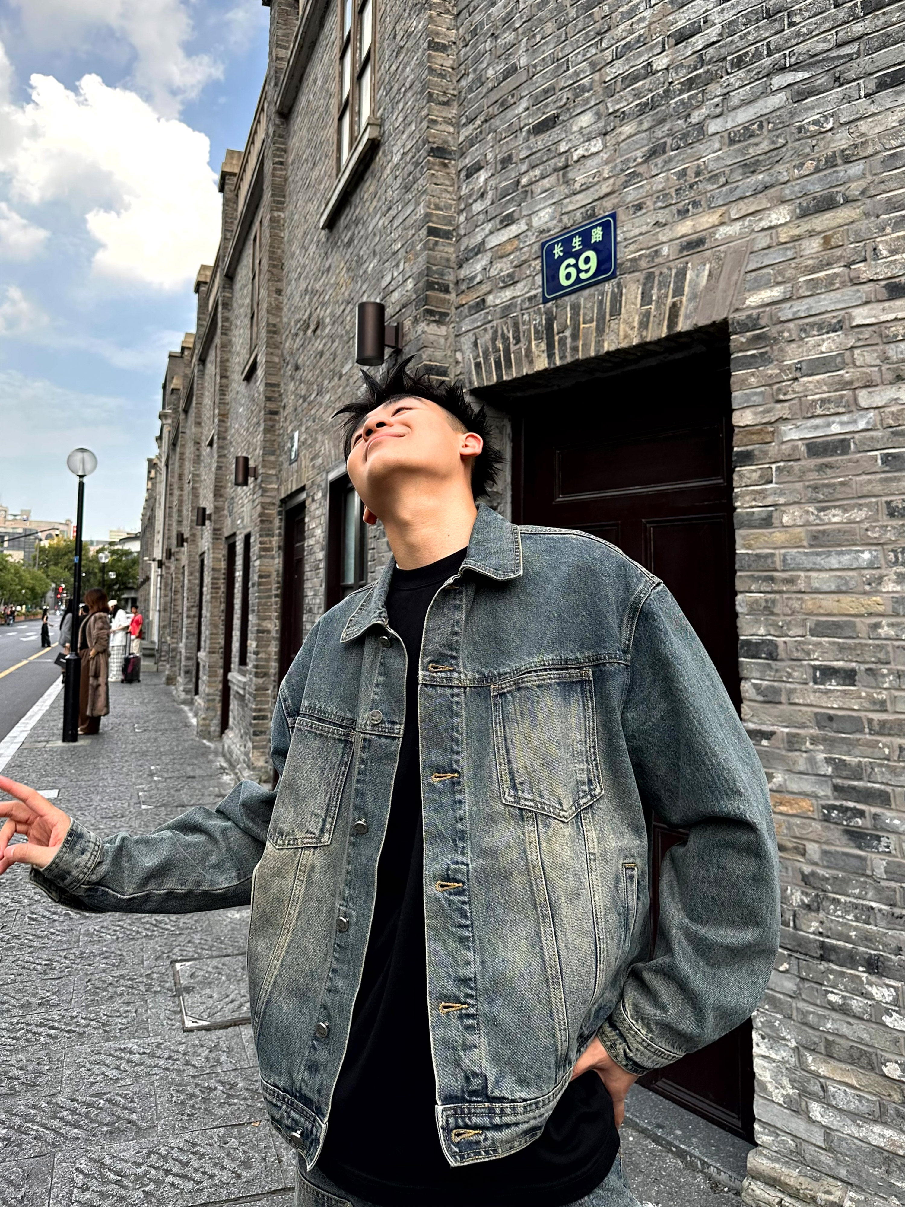 Sanbai Casual Denim Jacket Men's Autumn Washed Vintage Yellow Mud American Street Top