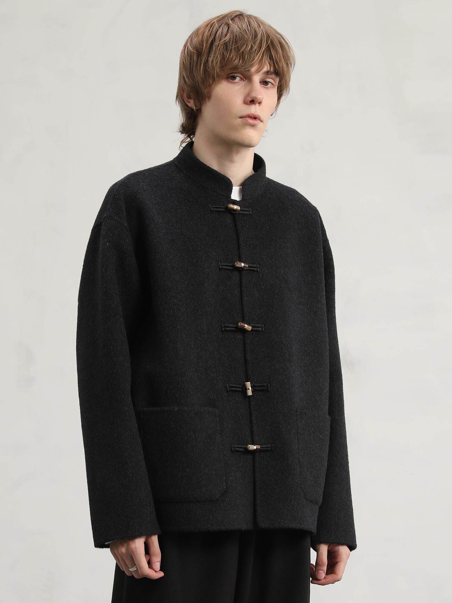 Cakunta New Chinese Style National Style Jade Button Tencel Wool Double-Sided Woolen Coat Elegant Commuting