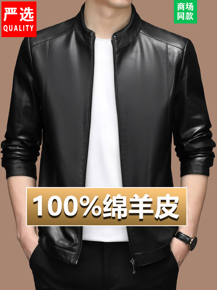 High-End Men's Leather Jacket, New Autumn and Winter Style, Business Casual Stand-Up Collar, Haining Genuine Sheepskin Leather Jacket for Dad