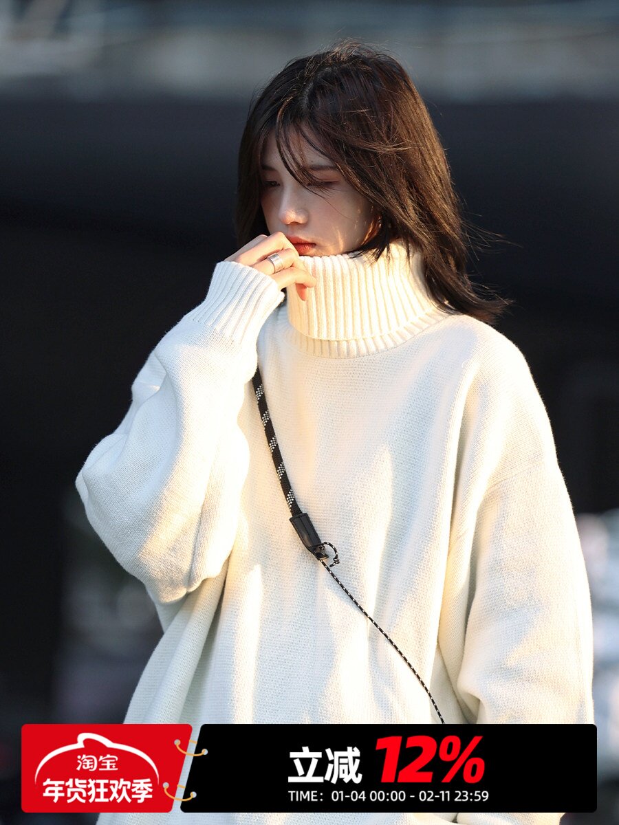 Your First Love, Old Wang, High-Neck Sweater for Men, Knitted Base Shirt, Long-Sleeved, Loose, Retro, Solid Color, Versatile, Same Style for Couples, for Women