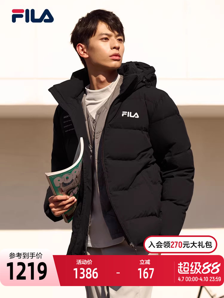 Fila Official Men's down Jacket Winter Warm White Trendy Sports Thickened Short Cotton Jacket for Men