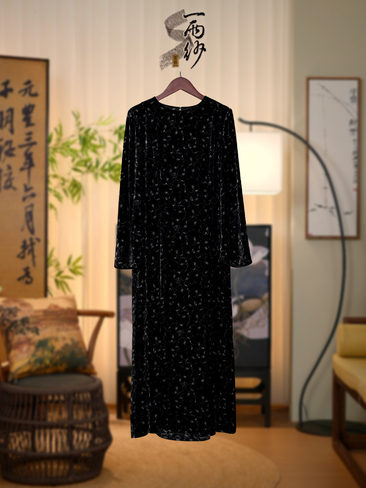 【Xiaodie】239727 Shen Haha Mulberry Silk Raw Fabric Real Silk Velvet Dress New Chinese Style 48 Weft
