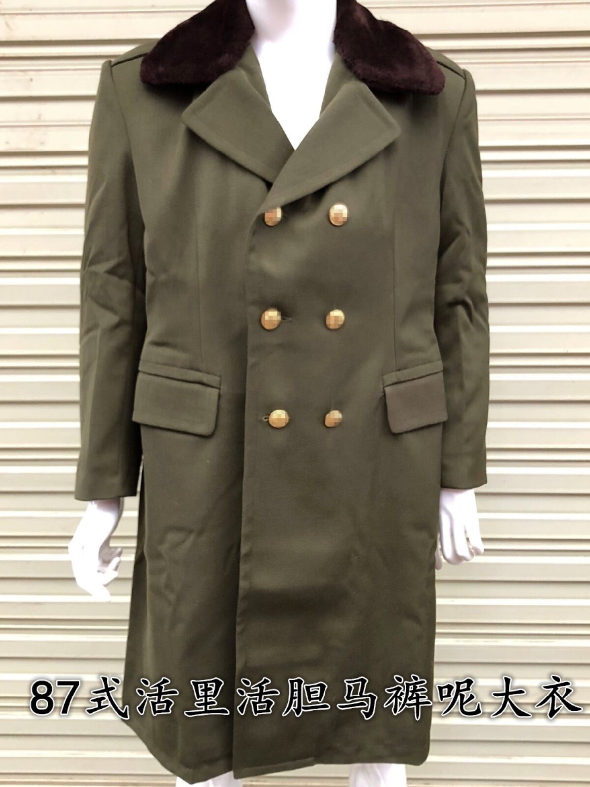 In Stock: Old-Style 87-Style Woolen Coat with Removable Lining, Green Coat with Fur Collar