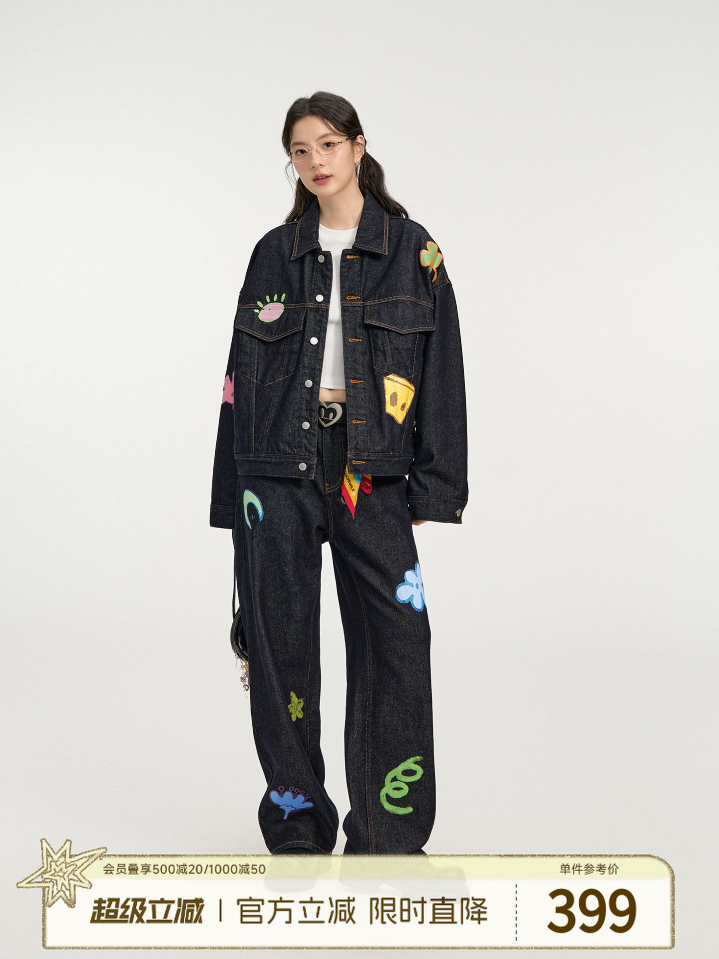 Dangerouspeople Joker Xue Dsp Playful Denim Print Trendy High Street Loose Jacket and Pants Set