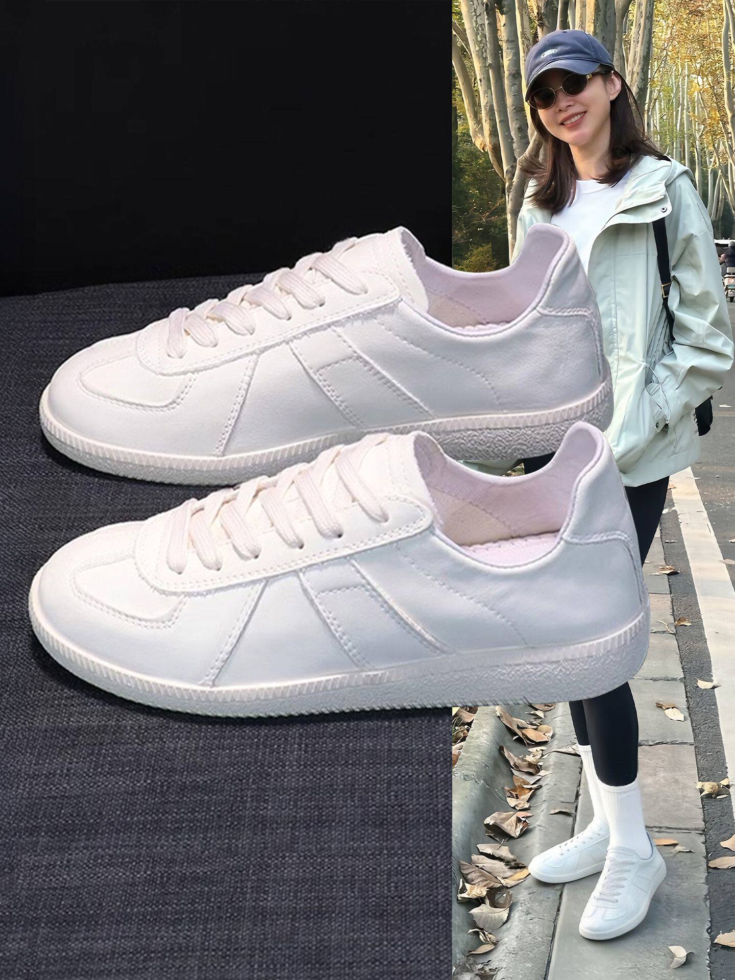 Sanli Genuine Leather Versatile White Shoes 2026 Spring and Autumn New Comfortable Shallow Mouth Sports Flat Shoes Round Toe Casual Shoes