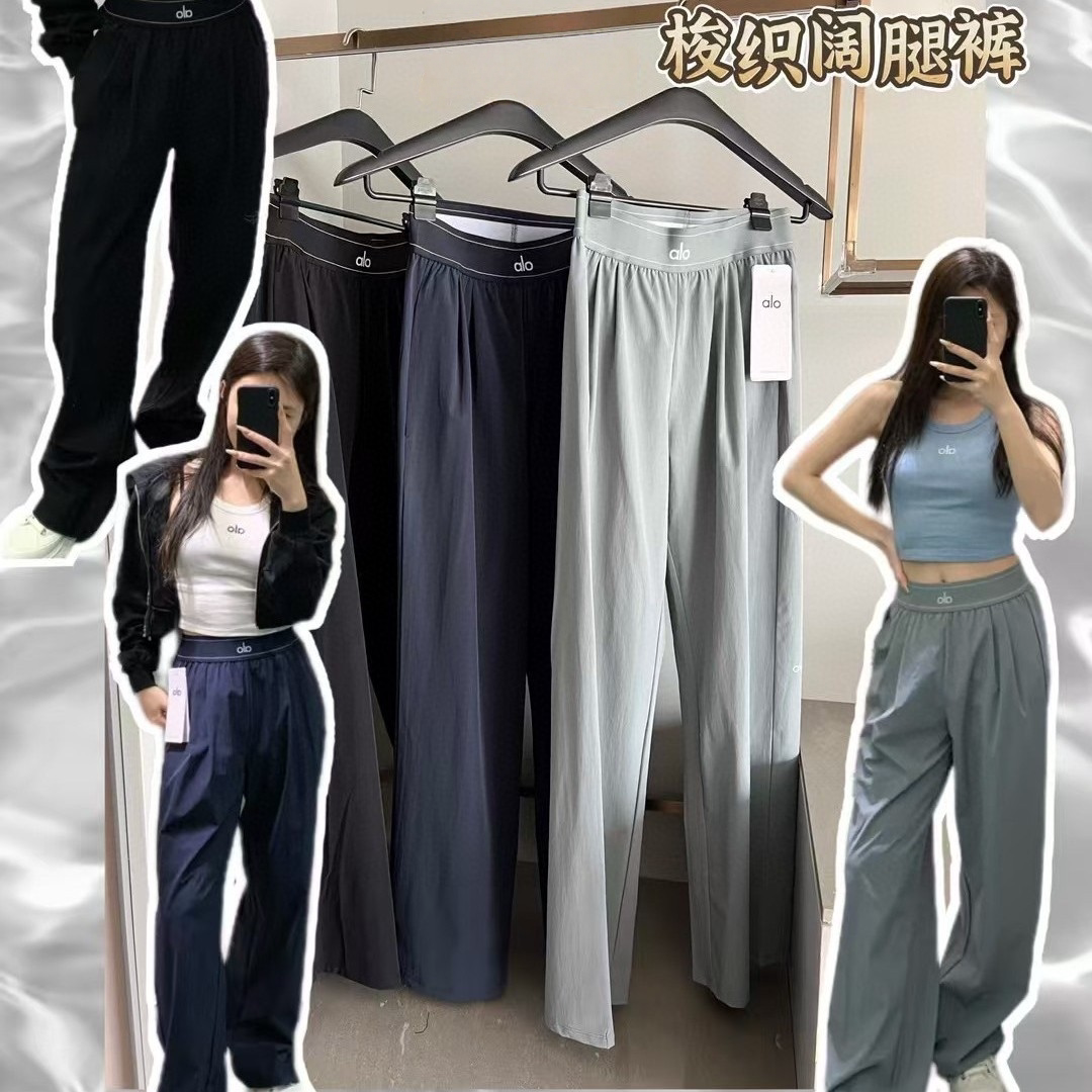 New Alo-Style Woven Yoga Pants for Women, Loose and Drapey Casual Pants, Slimming Wide-Leg Pants for Outdoor Wear
