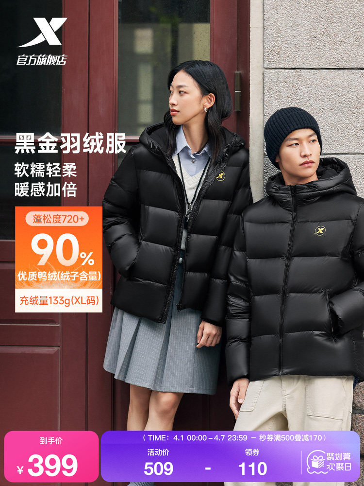 Xtep Black Gold down Jacket, Unisex, New Winter Sports Wear, Couple's Casual Top, Windproof and Warm Coat