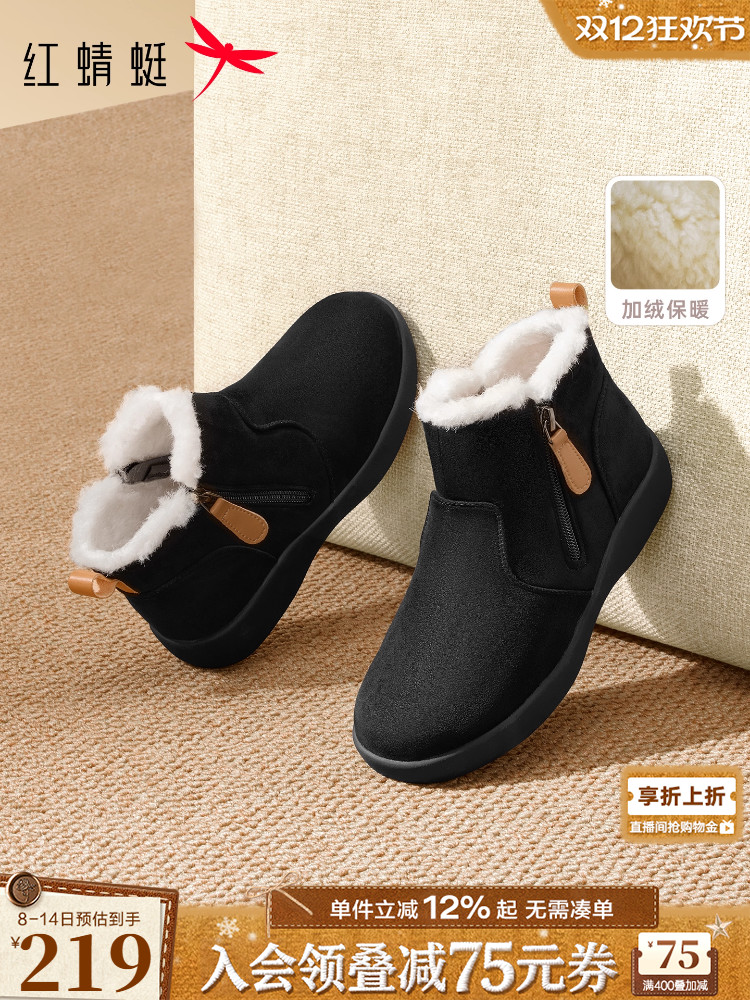 Red Dragonfly Mom's Cotton Shoes Winter New Style Fleece-Lined Warm Women's Shoes for Middle-Aged and Elderly People, Thickened Snow Boots for Northeast