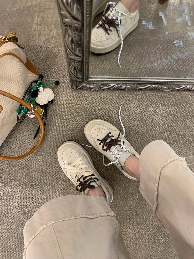 Sanli Retro Distressed German Training Shoes for Women 2025 Spring New Versatile Casual White Shoes Genuine Leather Double Shoelaces Forrest Gump Shoes