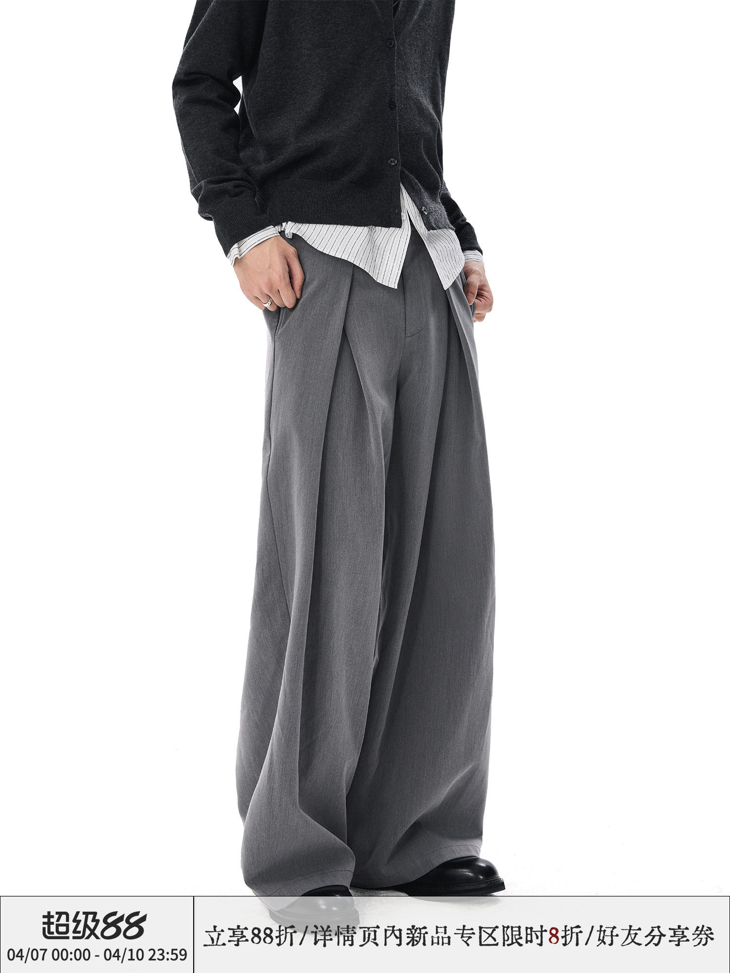 Sameuoo Loose-Fitting Cultural Gray Straight-Leg Dress Pants for Spring and Summer, Wrinkle-Resistant and Easy to Care For, Three-Dimensional Pleats, Unisex Style