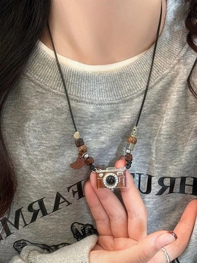 Vintage Brown Camera Pendant Necklace for Women, Niche Personality Sweater Chain, Sweet and Cool Versatile Clavicle Chain Accessory