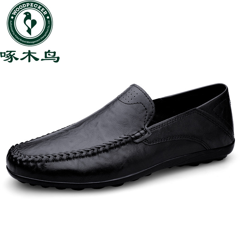 Woodpecker Leather Casual Slip-On Shoes for Men, Versatile Soft-Soled Dad Shoes, Wear-Resistant Loafers, Flat Anti-Odor Shoes
