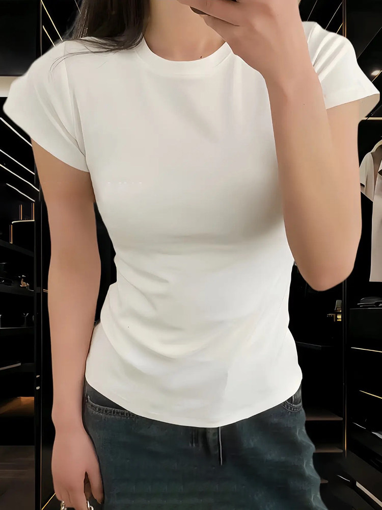 Moses Queen Polo Slim Fit Elastic Slimming Spring and Summer Inner Wear Round Neck Short Sleeve T-Shirt for Women