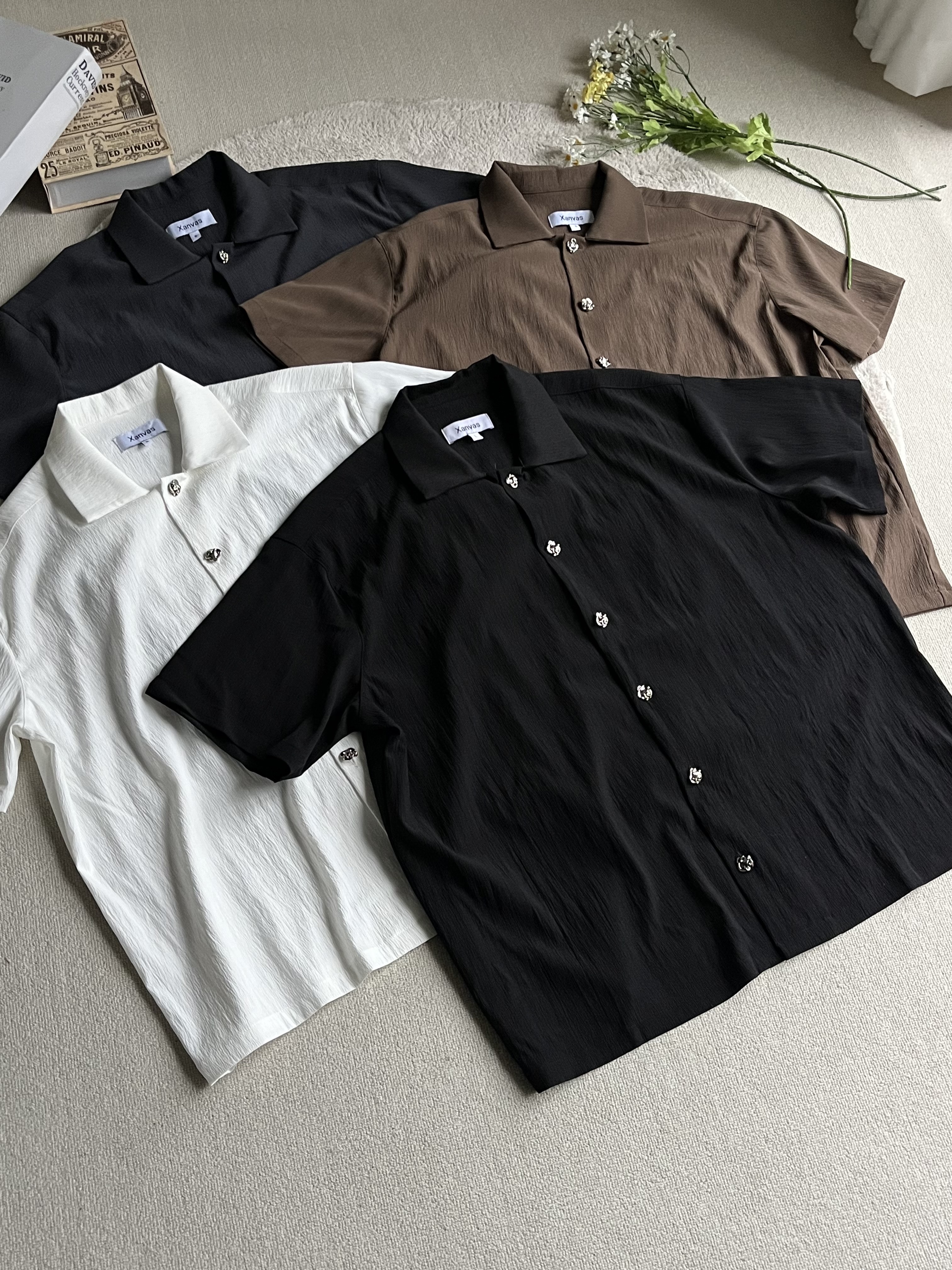 Xanvas's "Eternal Flower" Series Four-Color High-End Pleated Tencel Texture Blended Short-Sleeved Shirt Is Versatile for Summer
