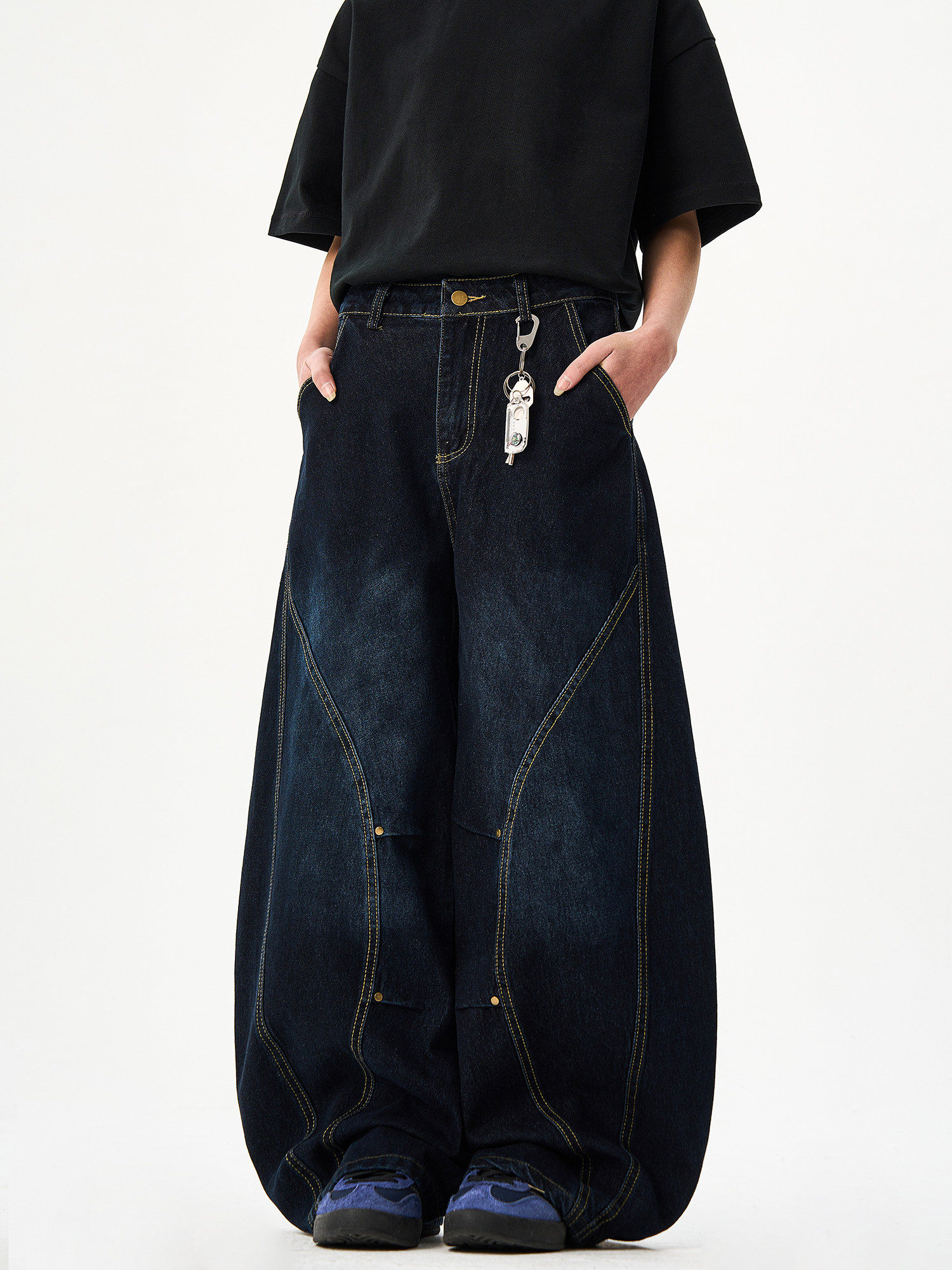 Woostop American-Style Dark Blue Scimitar Jeans for Men and Women, Loose Retro Straight-Leg Wide-Leg Baggy Sickle Pants