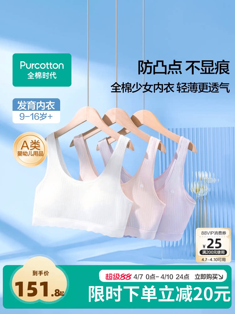 [2-Pack More Discounted] Cotton Era Girls' Underwear, Puberty Bra for Girls in Stage One, Two, and Three, Tank Top