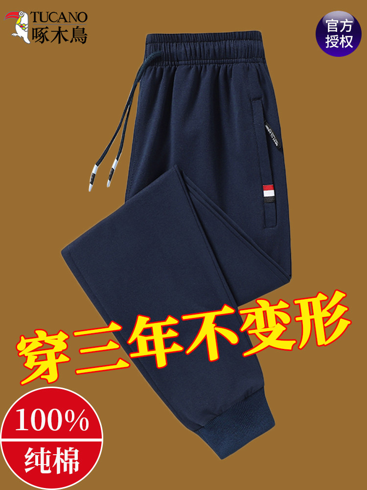 Woodpecker 2026 Autumn Pure Cotton Sweatpants Men's Sports Casual Pants Jogger Loose Large Size Straight Leg Trousers