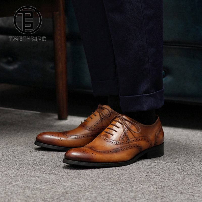 Cordy Bird Brogue Carved Men's Shoes, British Oxford Shoes, Genuine Leather Retro Pointed Toe Formal Groom's Leather Shoes, Business Men's Shoes