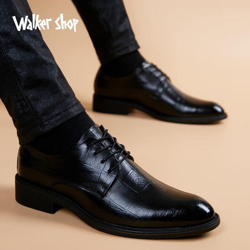 Walker Shop Light Luxury Men's Shoes Genuine Leather Shoes Men's Height-Increasing Business Formal Shoes British Pointed Leather Shoes