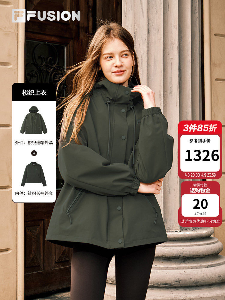 Fila Fusion Trendy Brand Two-Piece Top Set for Women 2026 Spring New Casual Hooded Three-In-One Jacket