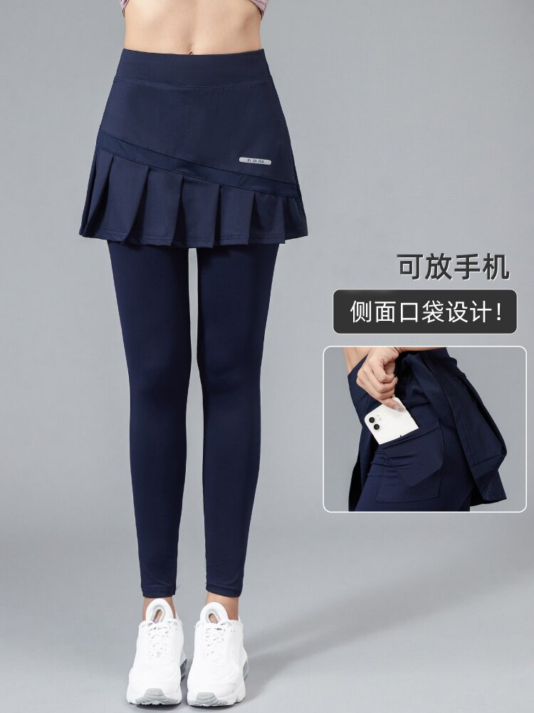 Spring and Summer Sports Skirt-Pants for Women, Thin Badminton and Tennis Skirt, Hip-Covering, Fake Two-Piece, Fitness Running Quick-Dry Long Pants