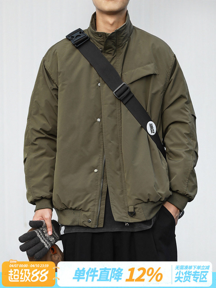Water-Repellent Heyma Qizuo Japanese Retro Winter Men's Dark Plaid American-Style Cotton Jacket with Stand Collar Trendy Brand