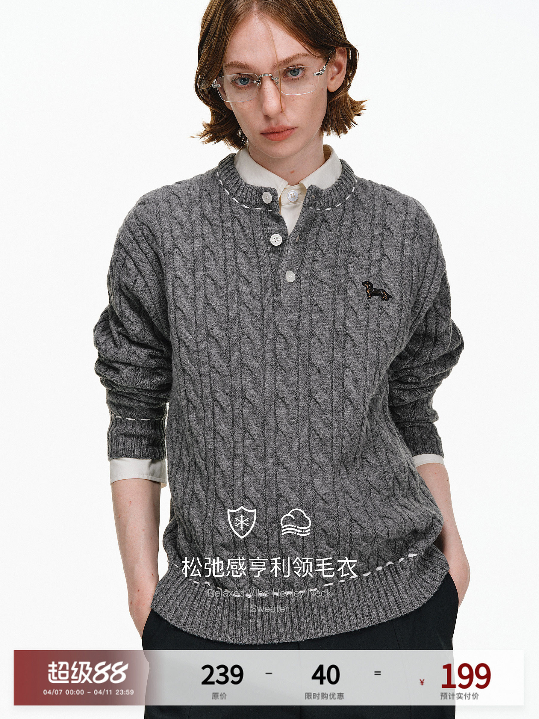 Pclp `Wool Blend` Twist Henry Collar Sweater Spring and Autumn Loose Couple Pullover Long Sleeve Knitwear