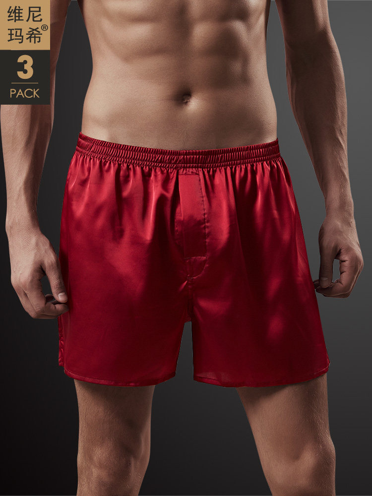 3 Pairs of Red Zodiac Year Boxer Briefs for Men, Loose and Comfortable, Plus Size, Four-Corner Imitation Silk Boxer Briefs for the Year of the Pig