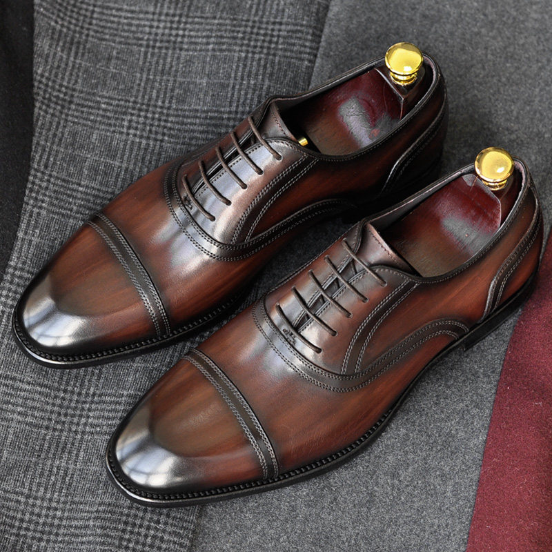 High-End Goodyear Handmade Genuine Leather Men's Business Formal Leather Shoes British Three-Joint Oxford Shoes Cowhide Wedding Shoes