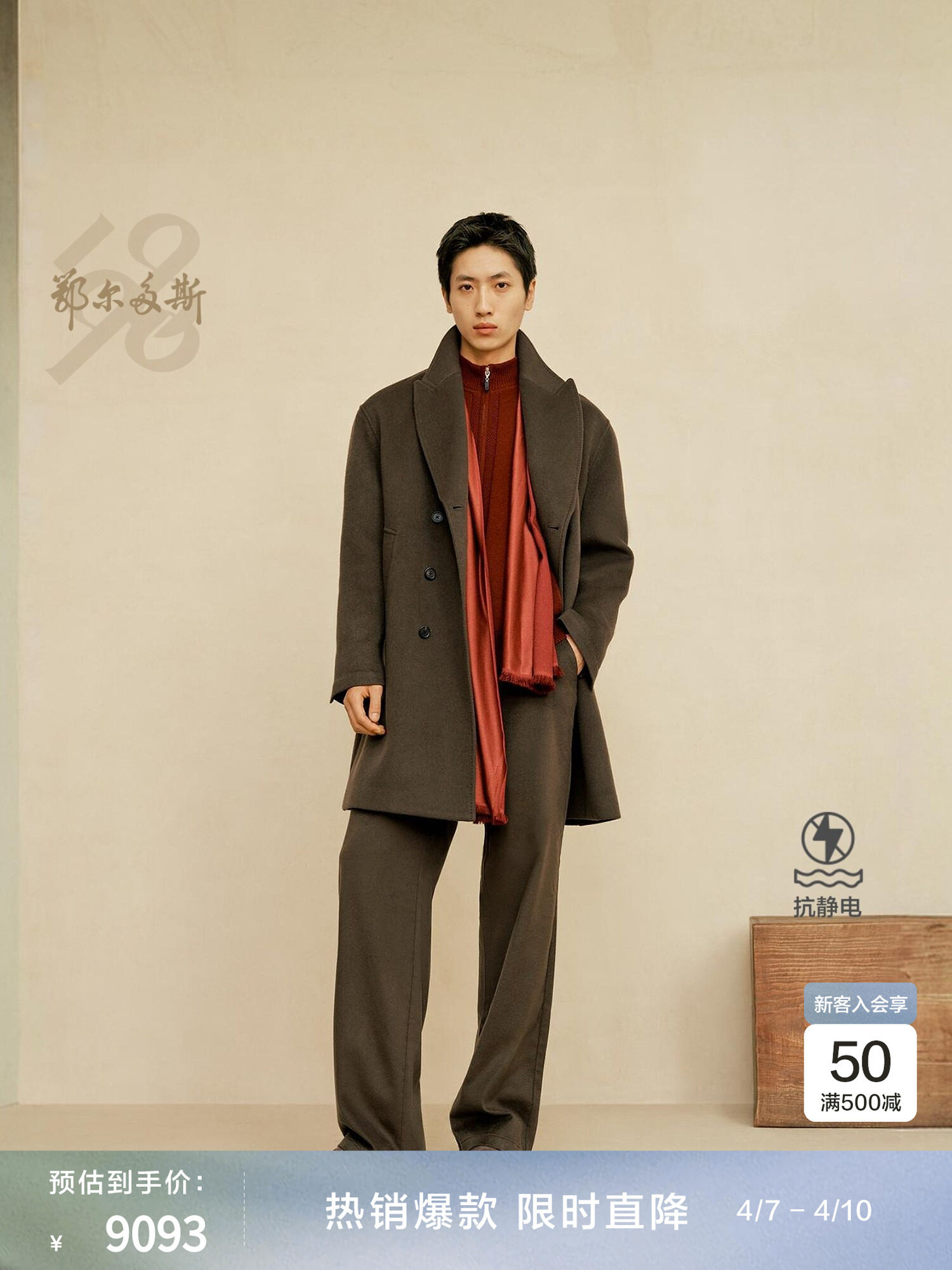 [Anti-Static] Ordos 1980 Suit Collar Double-Breasted Mid-Length Men's Cashmere Coat for Spring and Summer