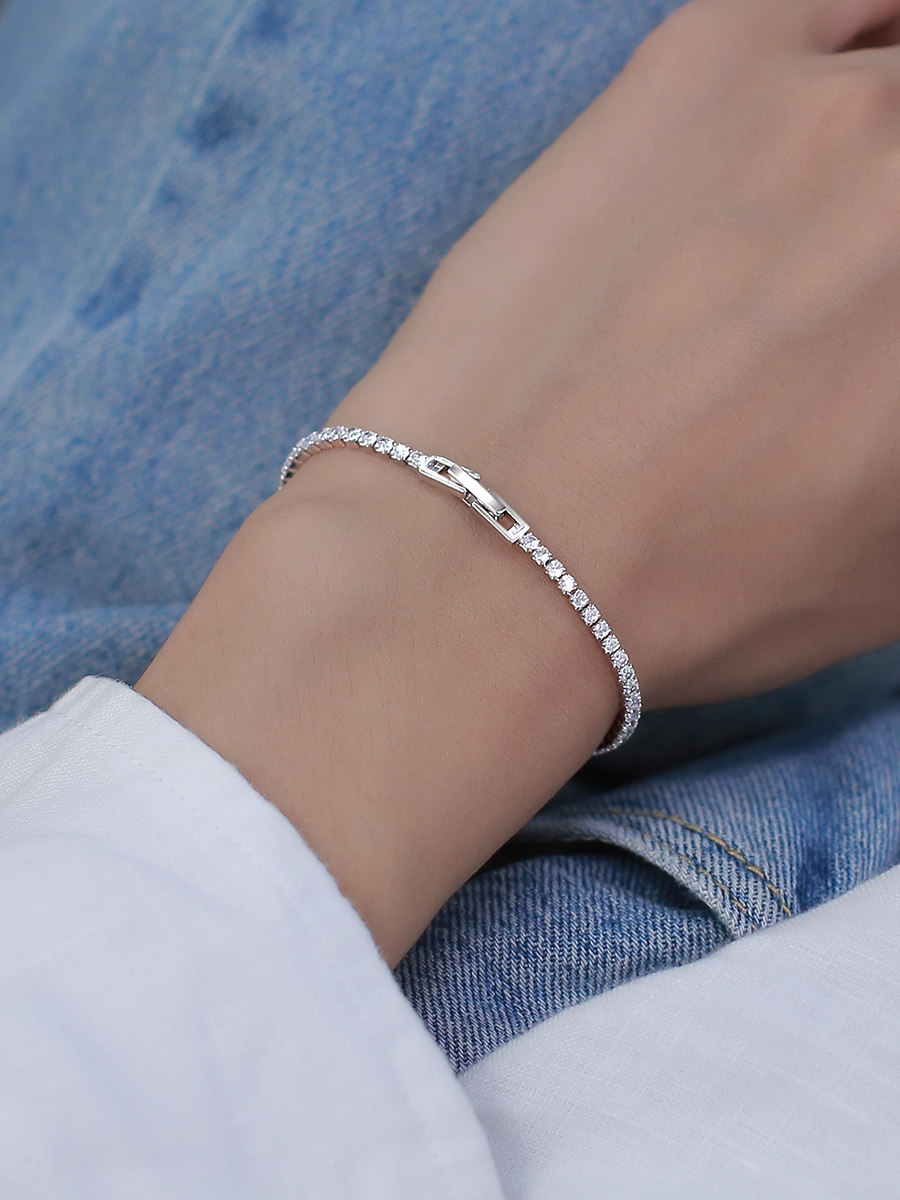 Yandai 925 Sterling Silver Super Shiny Zircon Bracelet for Women, Light Luxury High-End Bracelet, Niche Design Silver Bangle Jewelry