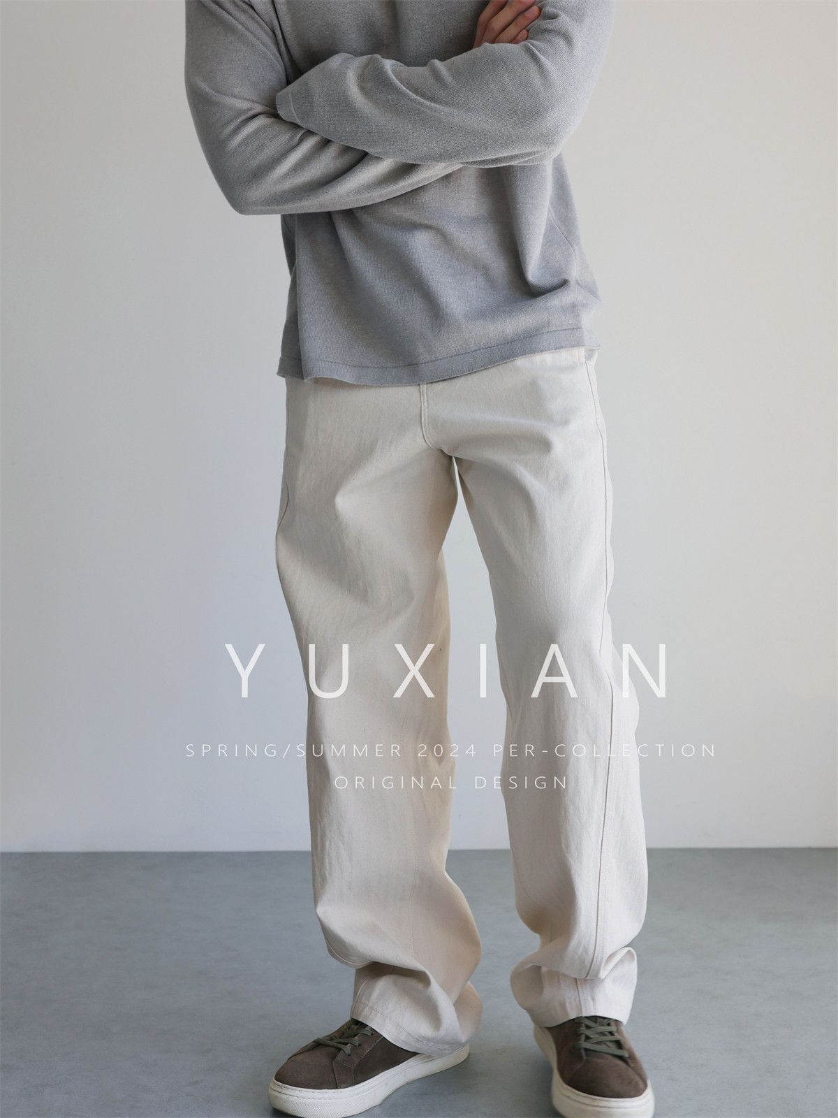 French-Style Curved White Denim Casual Jeans for Daily Commuting, Same Style as Yang Shuyu, Terraincognita