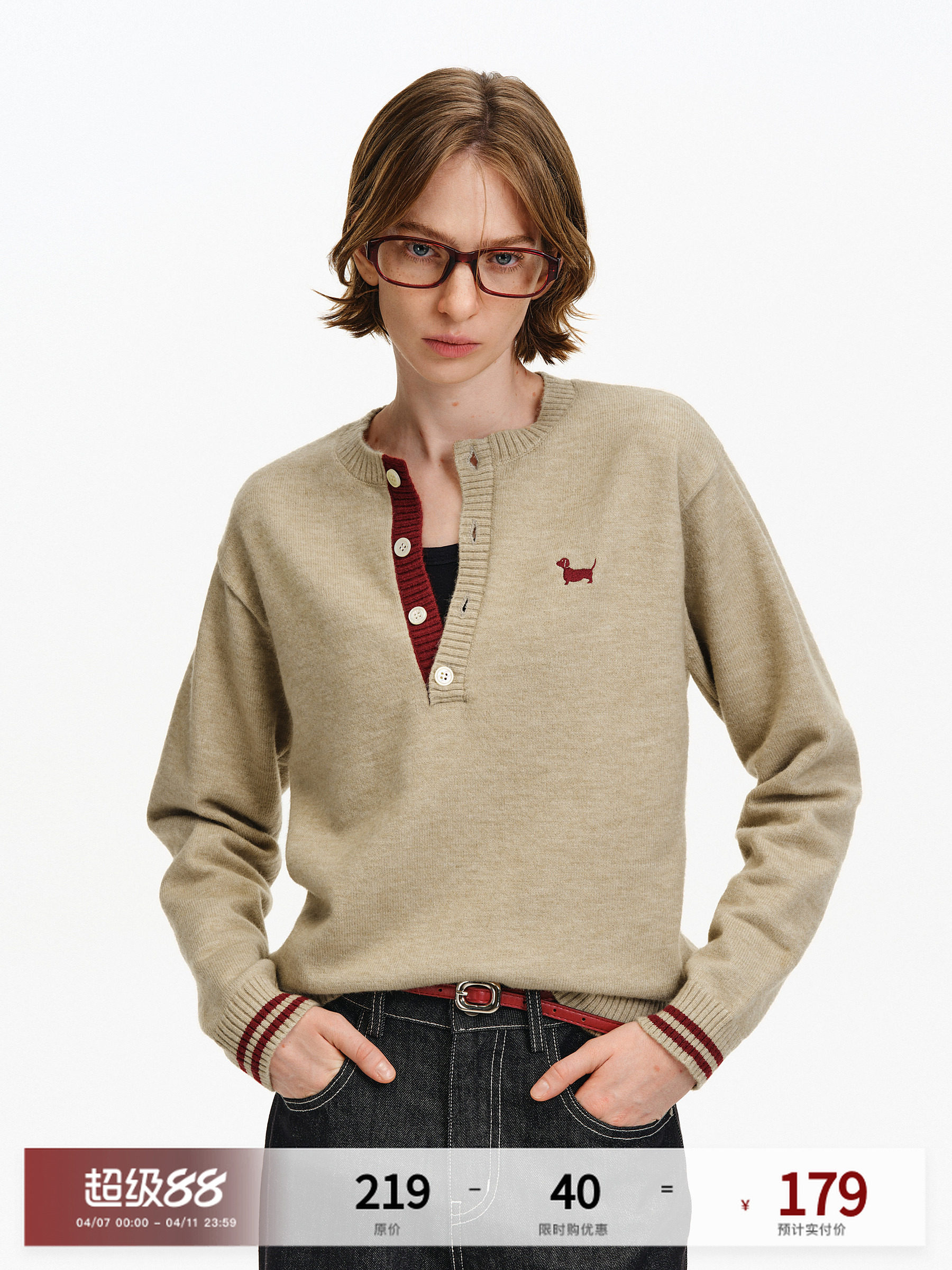 Pclp Intercolor Henry Collar Sweater, Loose Retro Trendy Lazy Couple Pullover Long-Sleeve Knitwear for Spring and Autumn
