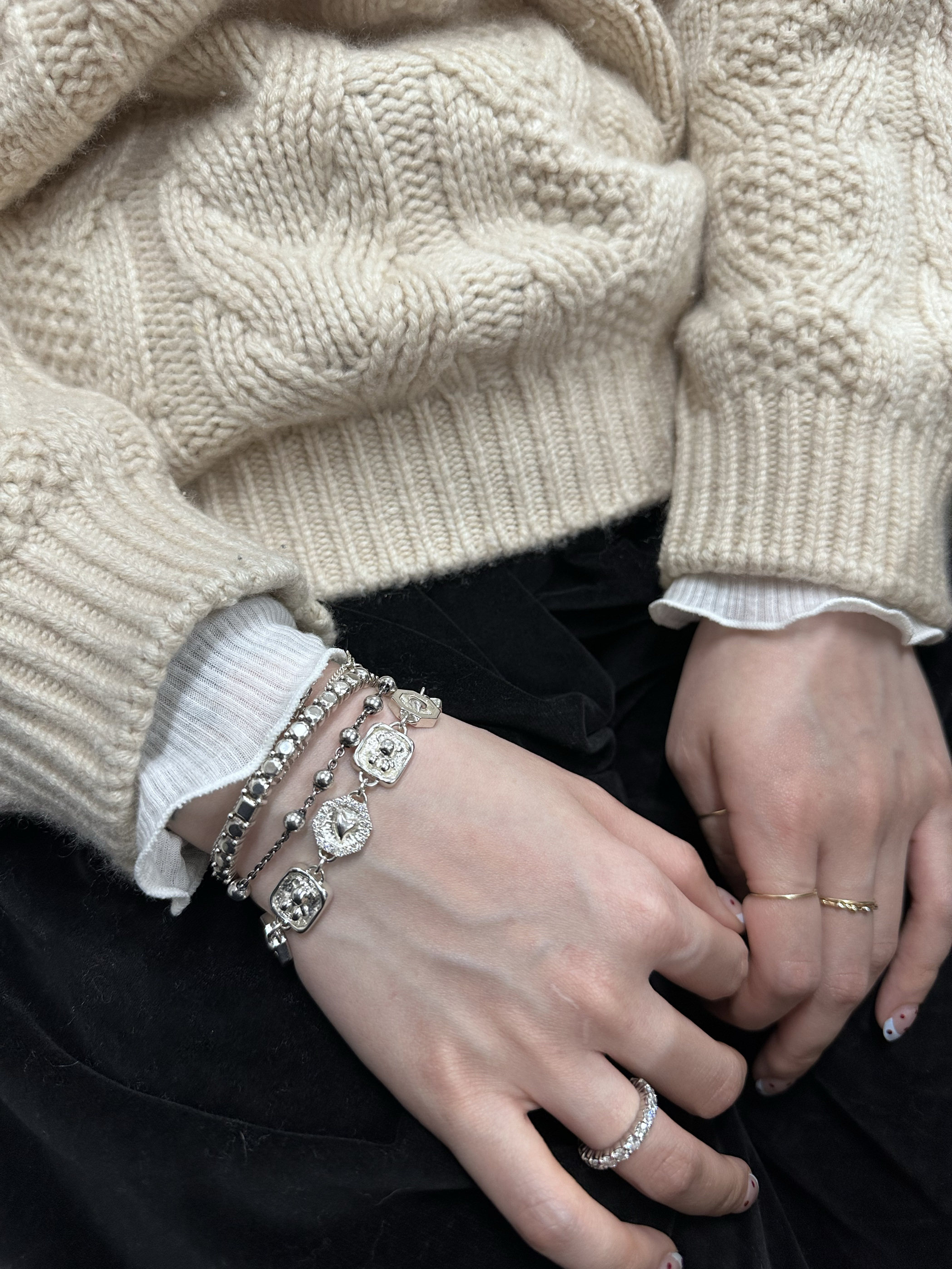999 Pure Silver Hammered Solid Disc with Beads, Large Hole Spacer, Handmade Braided Cord Accessories