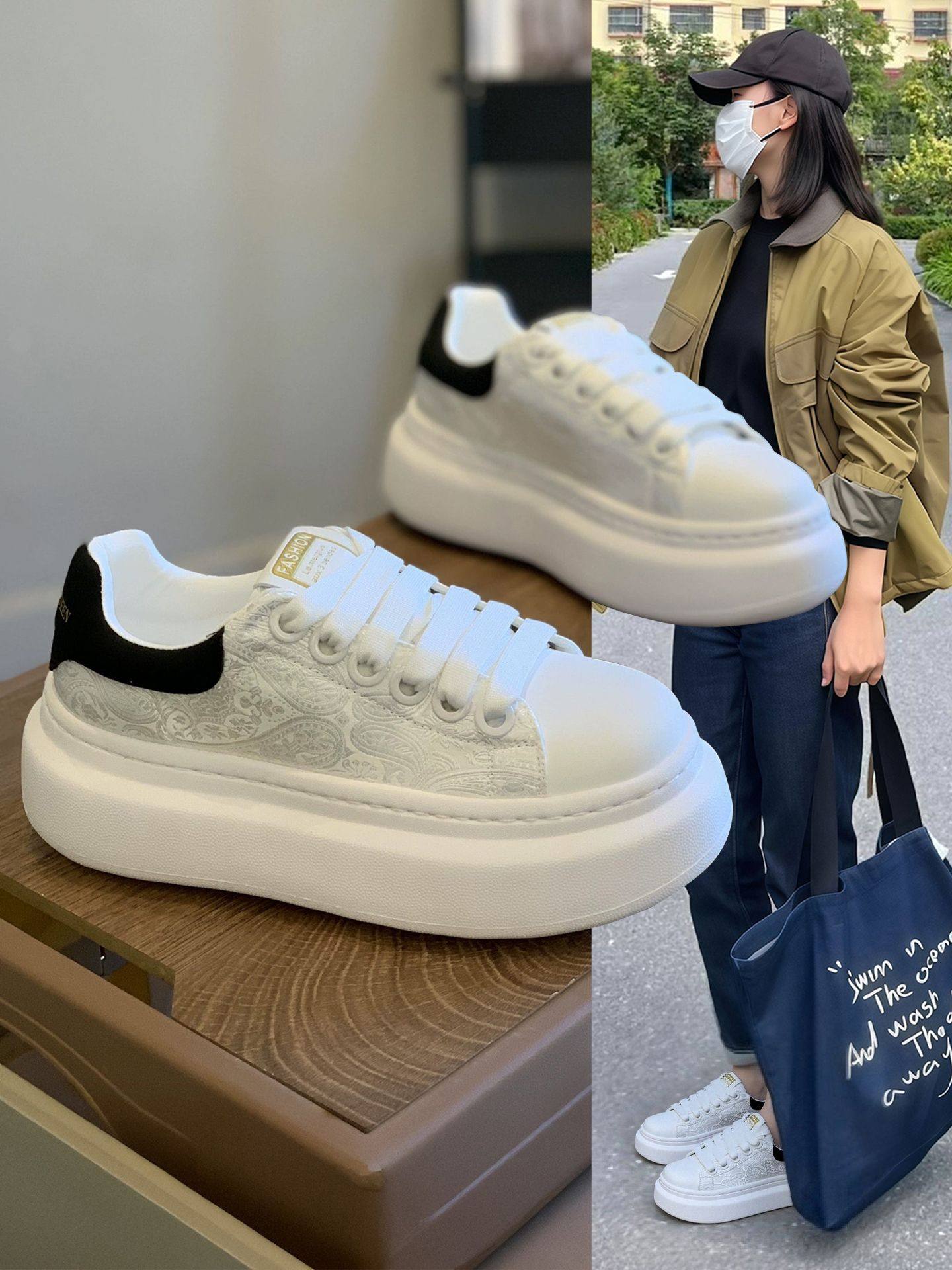 Hong Kong Platform Thick-Soled White Sneakers for Women 2026 Spring and Autumn New Style Simple Chinese Retro Lightweight Height-Increasing Casual Sneakers