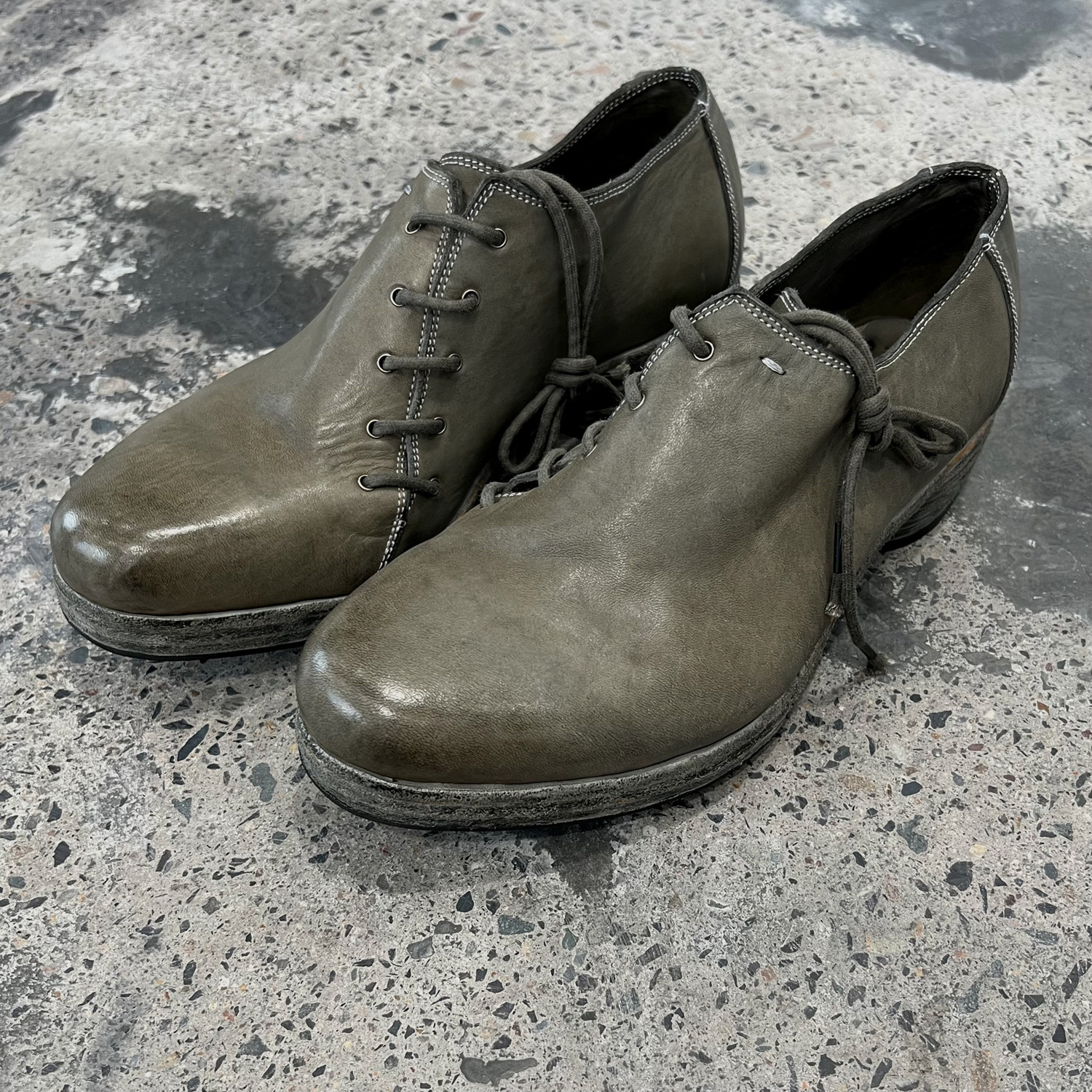 First-Layer Kangaroo Leather Mango Toe Lace-Up Dark Avant-Garde Hand-Stitched Goodyear Welted Water-Washed Artisan Derby Leather Shoes 2600L