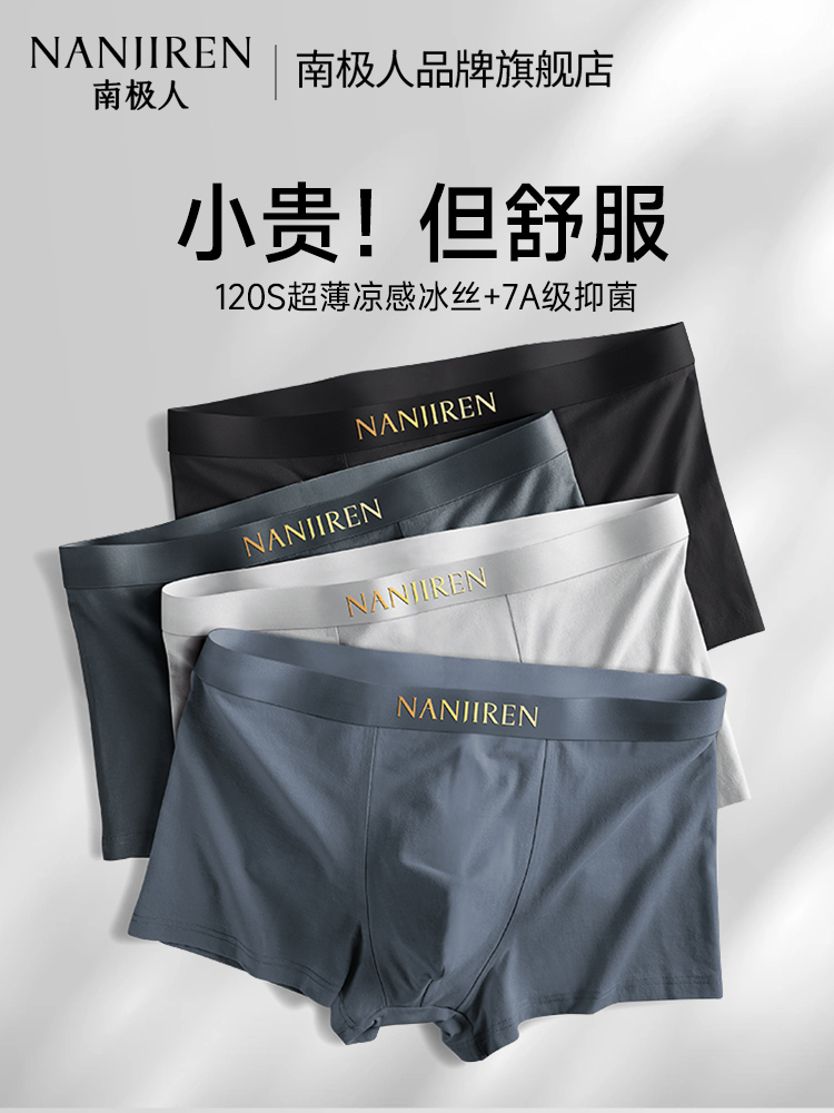 Antarctic Ice Silk Men's Underwear 2025 New Seamless Men's Boxer Briefs with Pure Cotton Crotch Antibacterial Shorts