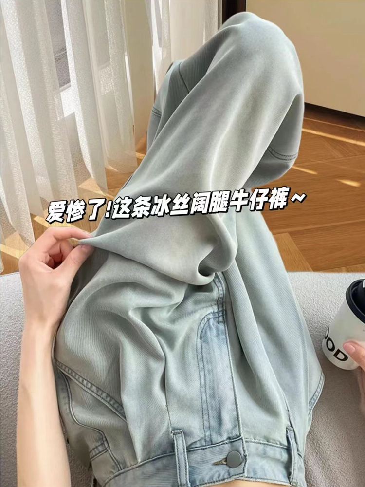 Pear-Shaped Body Straight-Leg Jeans for Women, Summer Thin Style, Plus Size, High-Waisted, Drapey, Slimming, Ice Silk Wide-Leg Floor-Length Pants