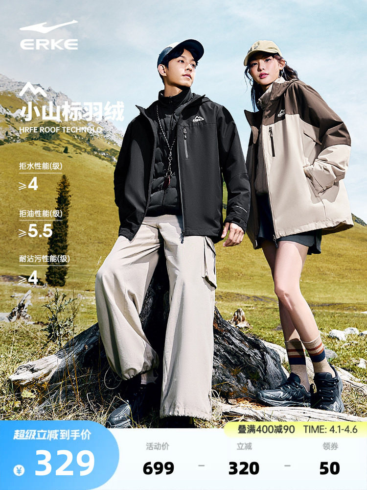 Hongxing Erke Three-Proof down Jacket, New Winter Model for Men and Women, Outdoor Three-In-One Assault down Jacket Top