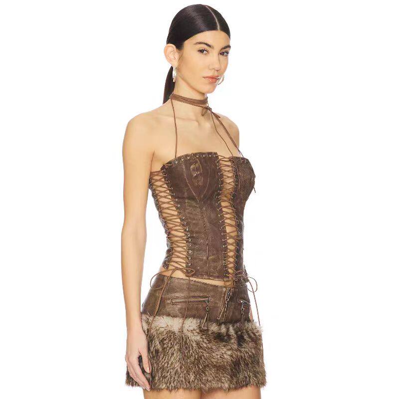 Jaded London Strappy Tube Top Mini Skirt Brown Hot Girl Style Revolve Niche New Style