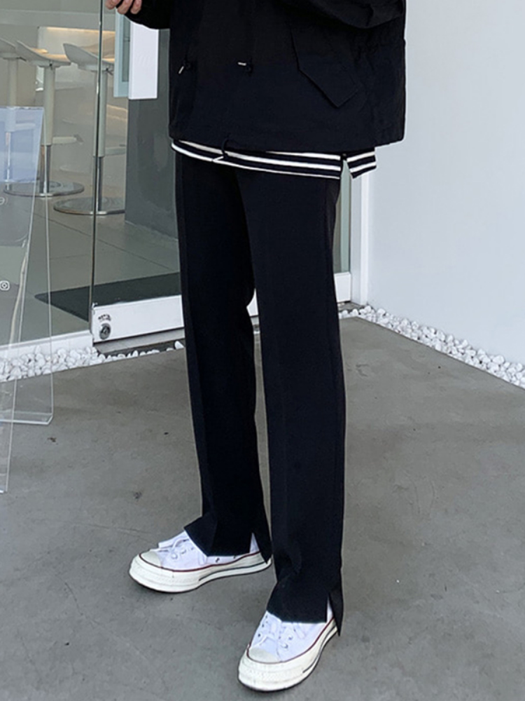 Korean Style Casual Men's Straight-Leg Loose-Fitting Trousers with Slits, Korean Version Trendy Versatile Drapey Suit Pants