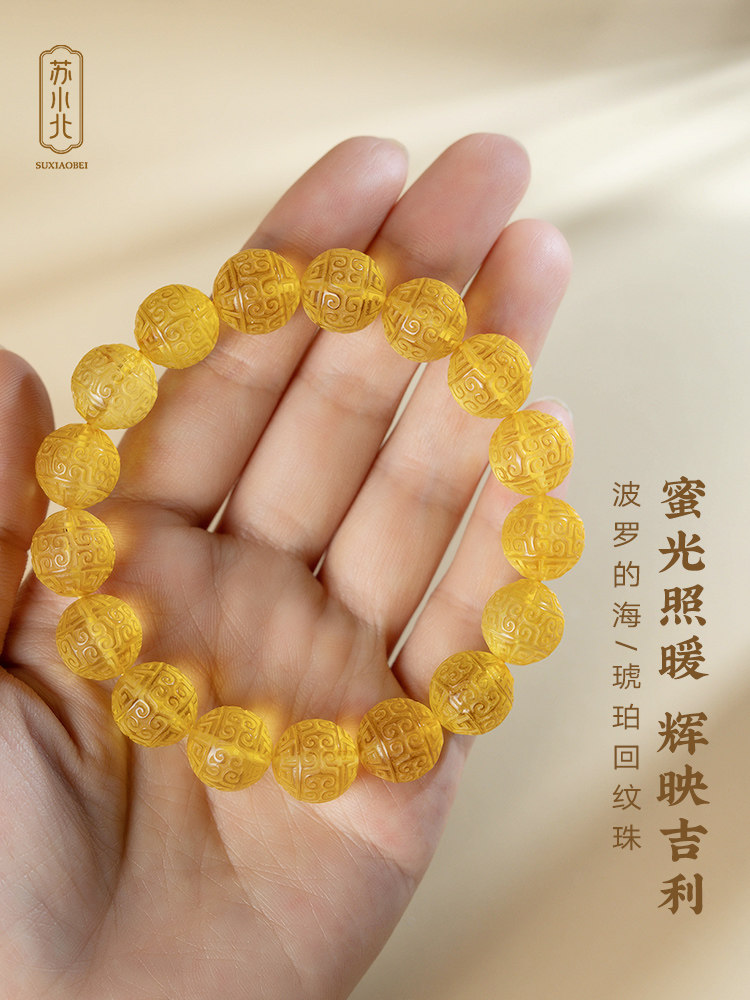 Su Xiaobei Baltic's Sea Amber Gold Amber Bracelet Pattern Engraving Bracelet Wenwan Buddha Beads Raw Stone Accessories Men and Women