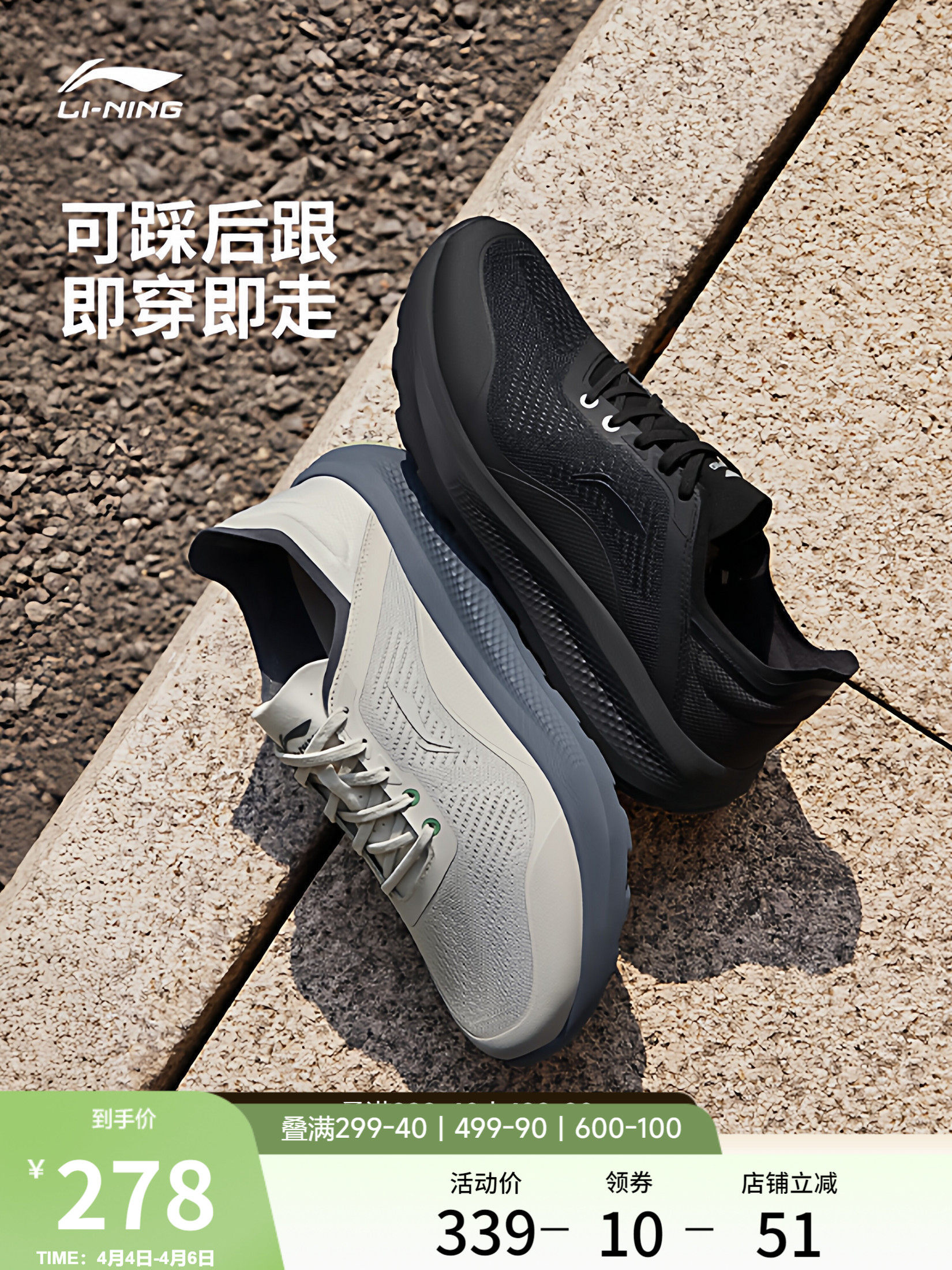 Li-Ning Yunyi | Men's Casual Shoes 2026 Summer New Slip-On Commuter Trendy Walking Sports Shoes