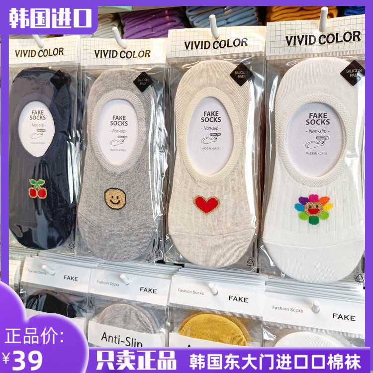 Korean Dongdaemun Imported Silver Thread Heart Smiley Cherry Silicone Non-Slip Pure Cotton Invisible Boat Socks for Women in Summer