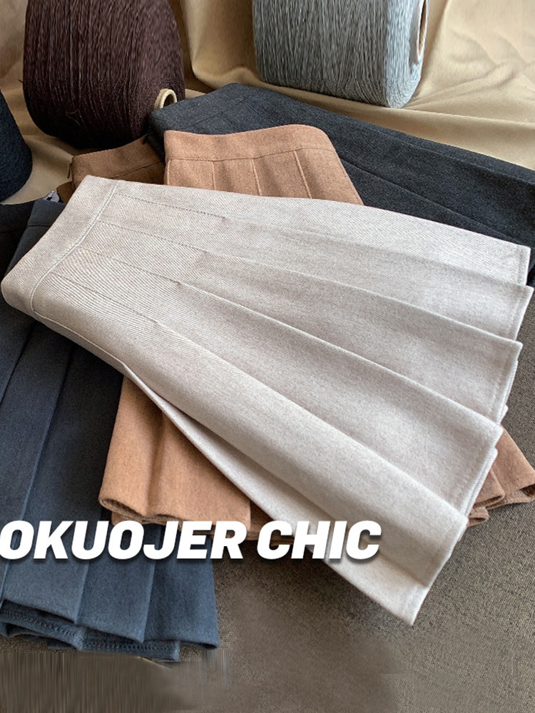 Wool Pleated Skirt for Women 2026 Spring, Autumn, Winter High-Waisted Slimming School Style Jk Half Skirt Thickened Plus Size A-Line Short Skirt