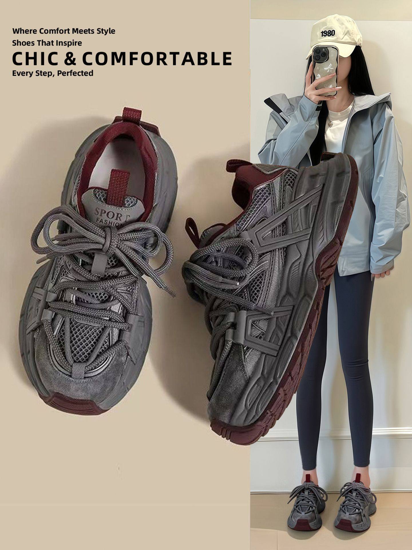 Hong Kong Thick-Soled Dad Shoes for Women 2026 Spring and Autumn New Style Parisian Petite Height-Increasing Gray Trendy Heavy-Duty Sneakers