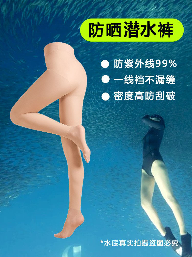 Sun Protection Diving Socks, Seamless, Natural Skin Color, Surfing, Plus Size, Extended Length, Flesh-Colored, Quick-Drying, Snorkeling Base Layer, Shark Pants